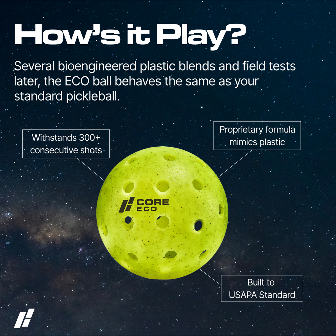 Yes! If you want a pro-level pickleball that feels, performs, and lasts like traditional plastic, but with a biodegradable twist, the CORE ECO is the best option available.